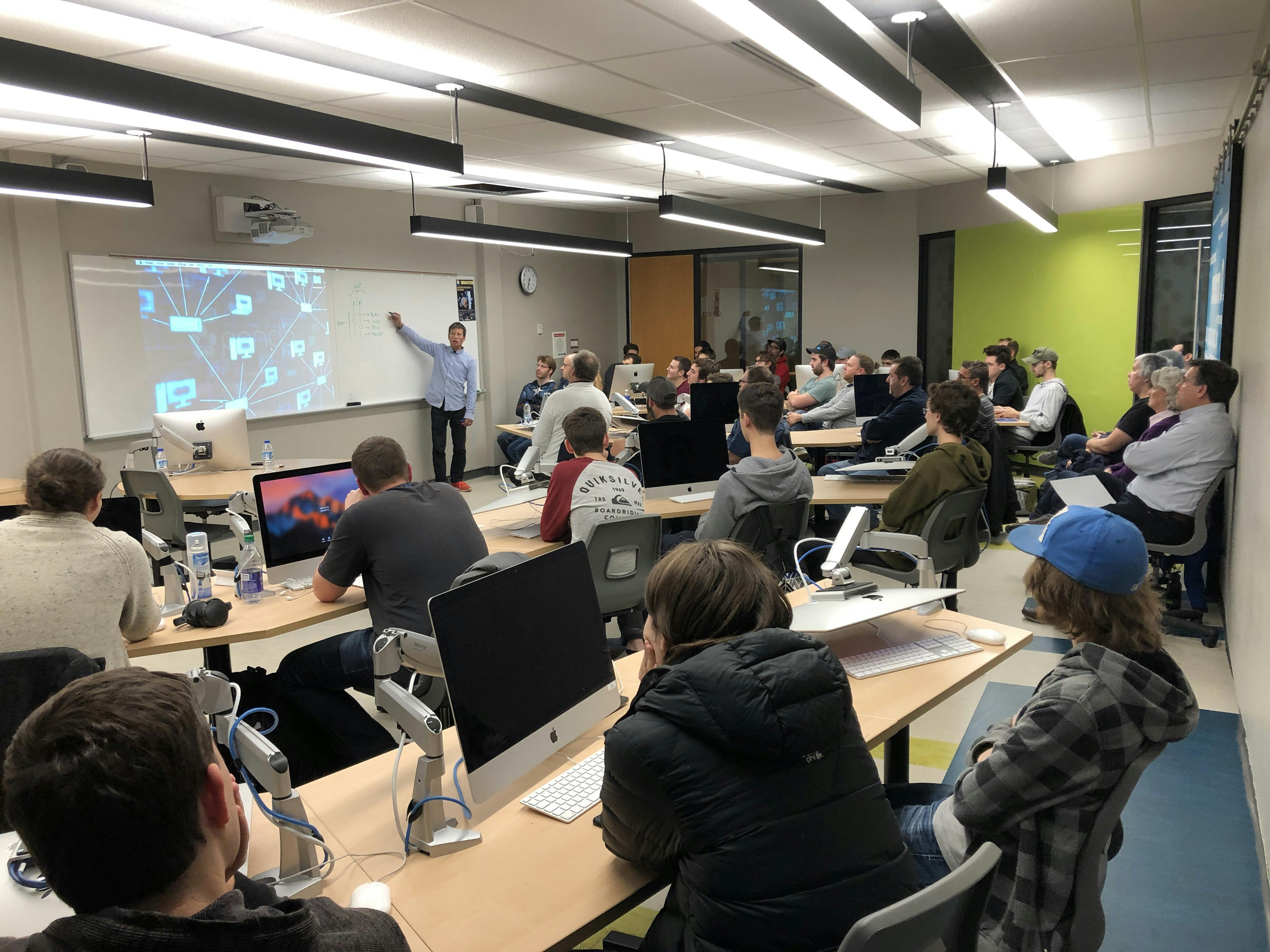Sorel-Tracy, le 7 novembre 2018. – Pour la quatrième conférence de la saison 2018-2019, Alexandre Vovan, professeur au Cégep de Sorel-Tracy a donné un atelier de formation sur les principes de bases d’une architecture réseau. Impliqué dans de nombreux projets d’architecture réseau pour d’importants clients, et ce, de l’amorçage du projet jusqu’à l’optimisation de celui-ci, monsieur Vovan a partagé avec passion son savoir.